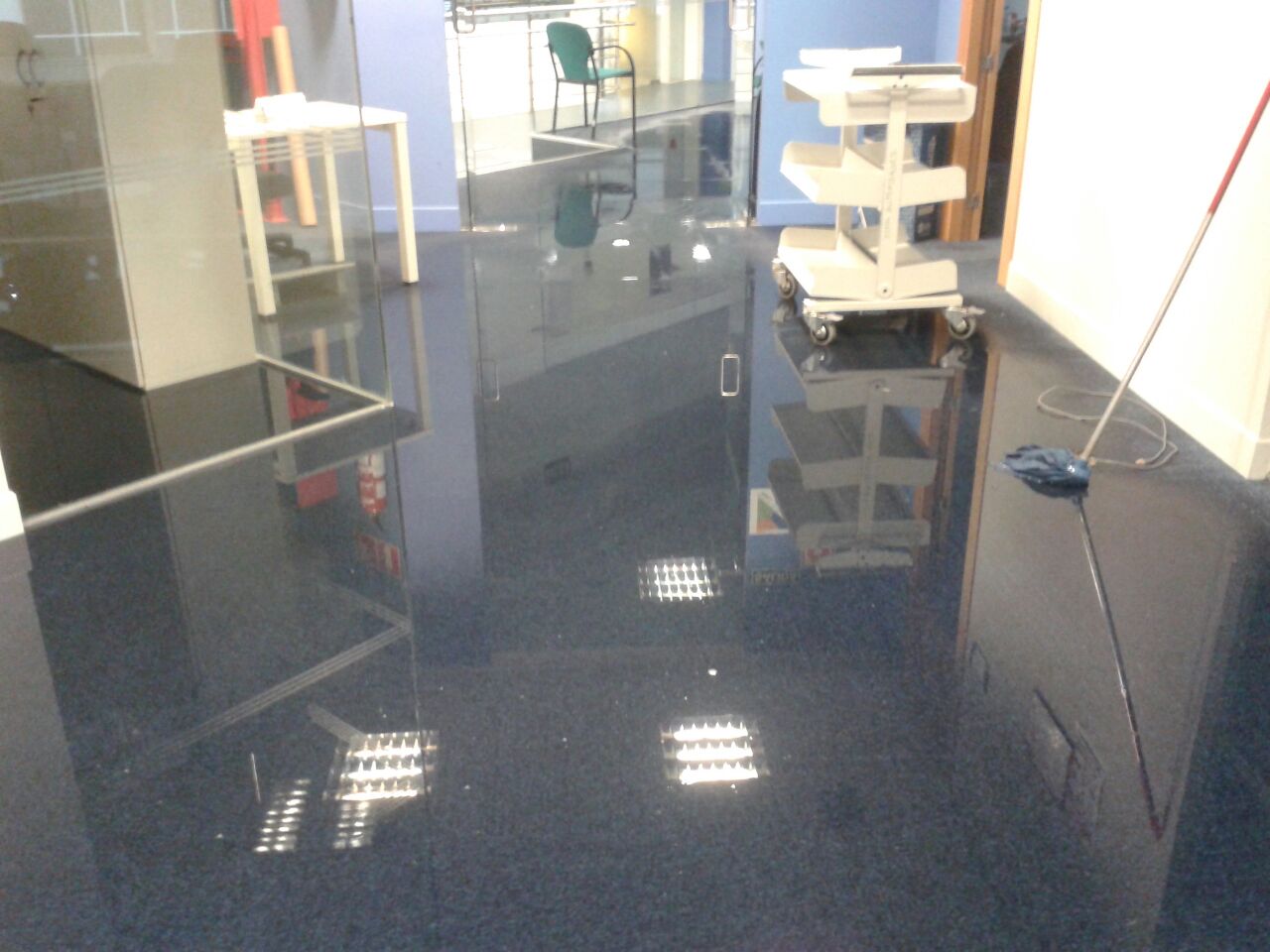 En la planta 4.ª los despachos inundados, en la 2.º los offices.